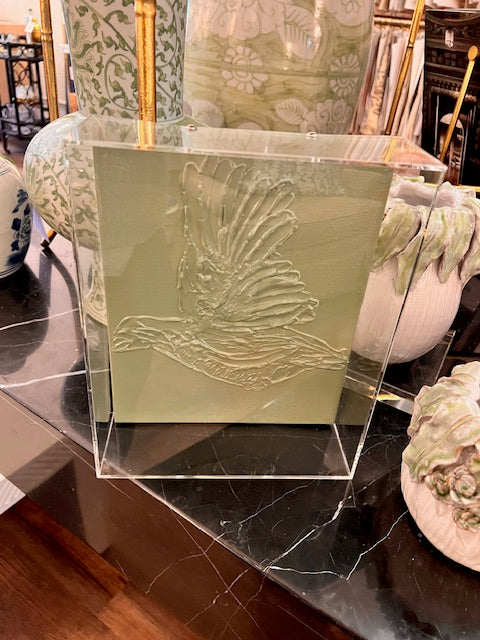 Ashley Olson originals. Textured quail relief framed in acrylic shadowbox style frame. 8x10 canvas, frame has 3" depth. Ready to hang on the wall, or stand on table or bookshelf.
